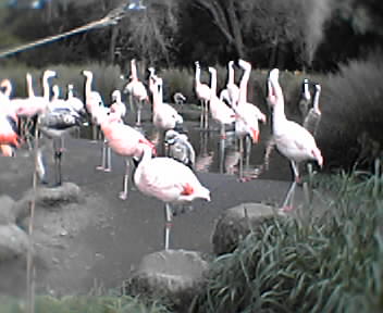 The flamingos at the San Francisco Zoo. February 28, 2004. |