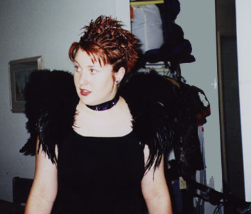 Lynn in her festive wings. December, 1999. |