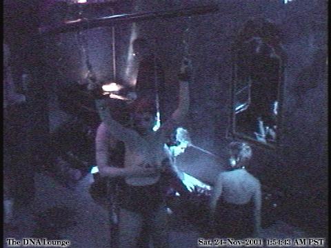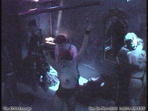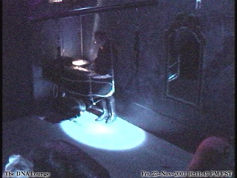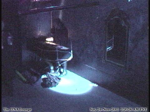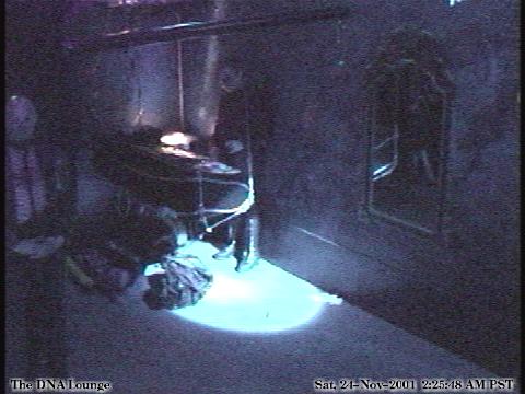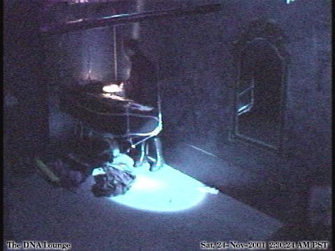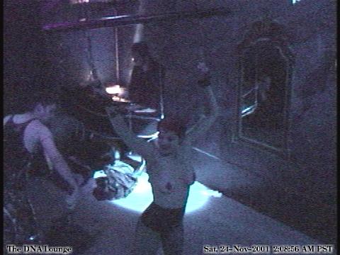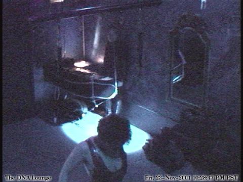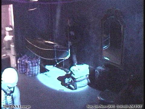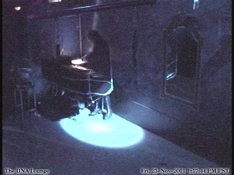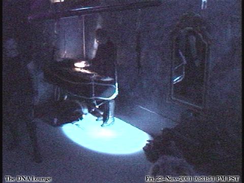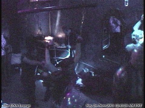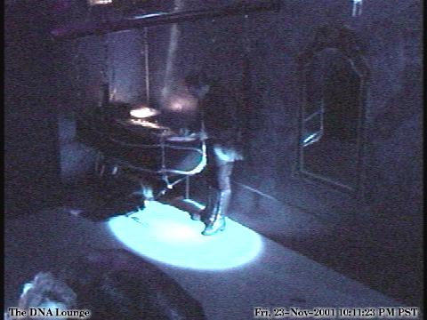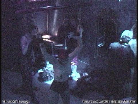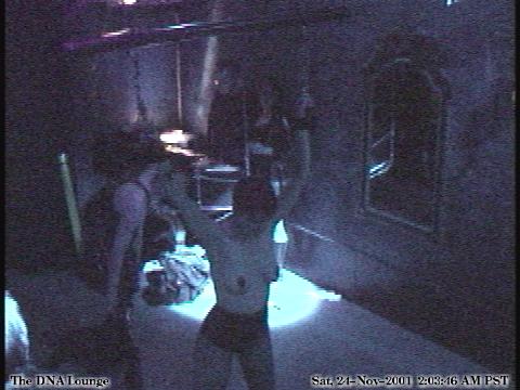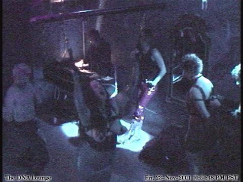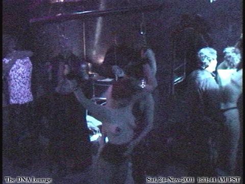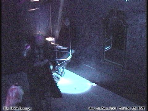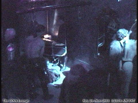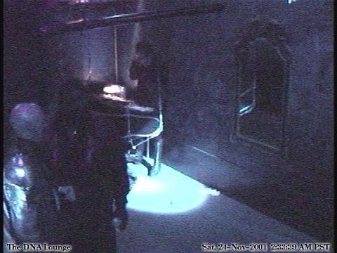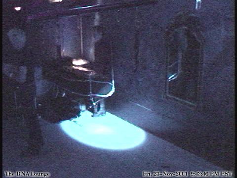 November 23, 2001, at Club Slick, which took place at the DNA Lounge, taken by the webcam in the lounge. It's a peek into the exciting life of an erstwhile DJ; that's me in the corner.