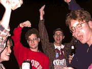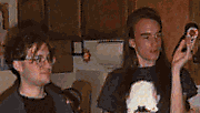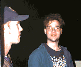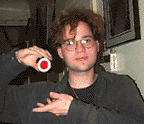 In 1996, I started hanging out with a bunch of web geek types--the Cyborganic crowd--who had this weekly themed dinner on Thursday nights at "corporate headquarters" (a Victorian on Ramona St. in the Mission). Here are some pictures from the events, and a couple of bonus pieces of art made on the little original cute Mac that they always had set up.